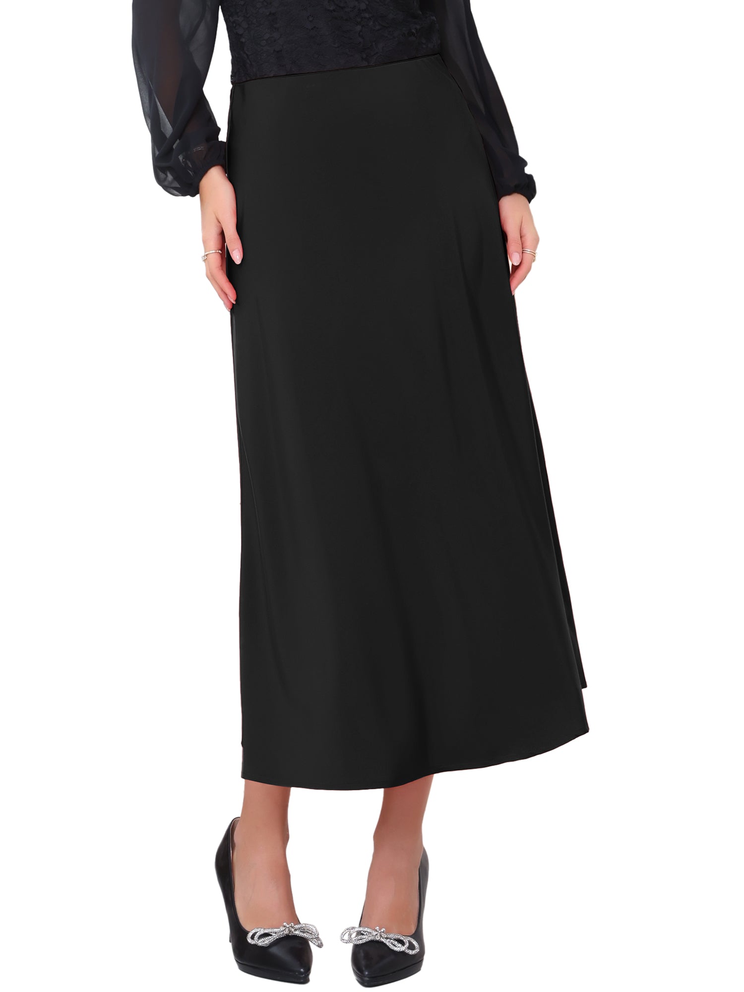 Women's Satin High Waist A-Lined Evening Cocktail Mermaid Maxi Skirt