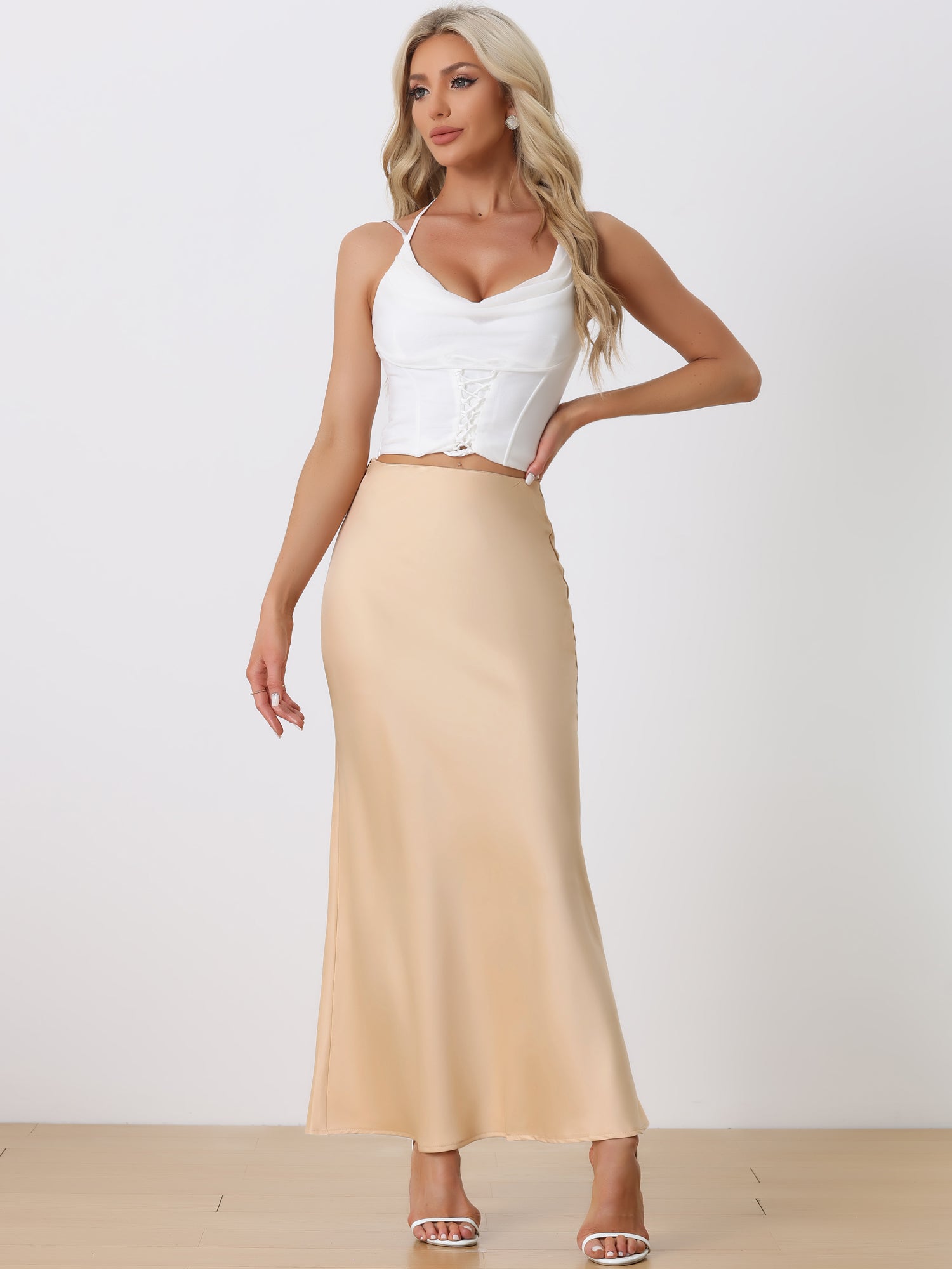 Women's Satin Maxi Skirts High Waist Elegant Long Fishtail Skirt