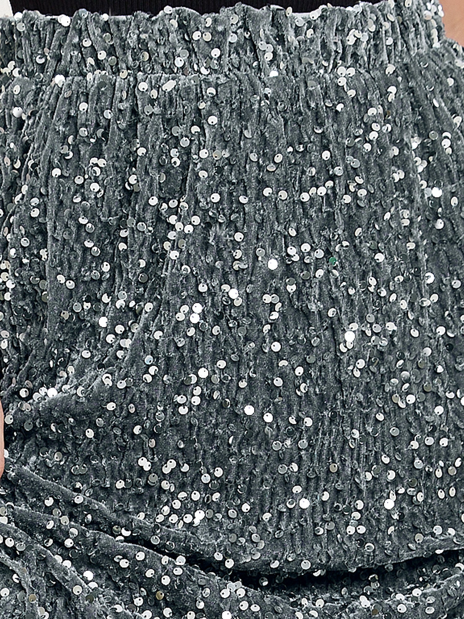 Women's Sequin Velvet Elastic Waist Sparkle Party Maxi Skirt