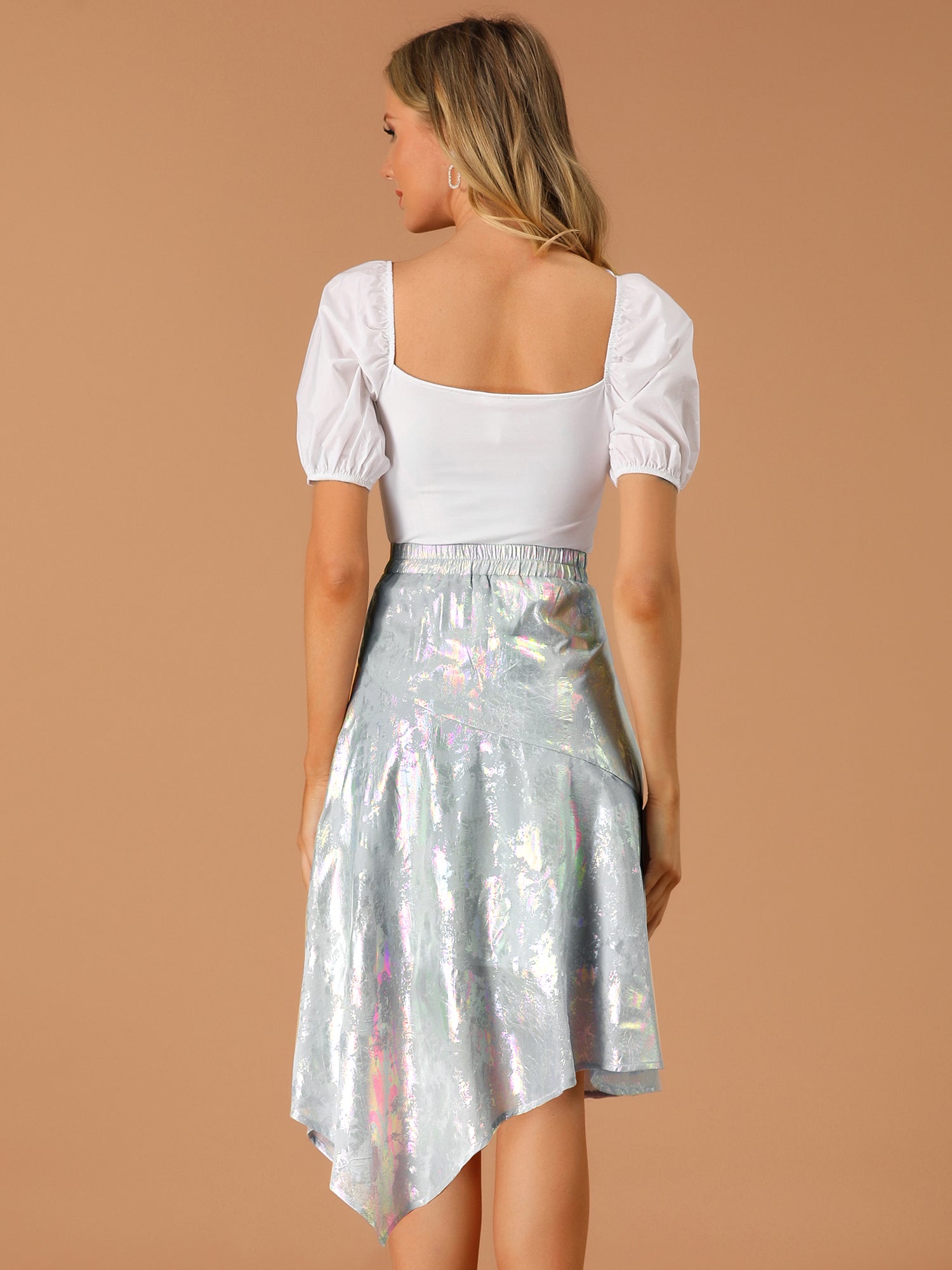 Women's Shiny Holographic Chiffon Asymmetric Hem Skirt