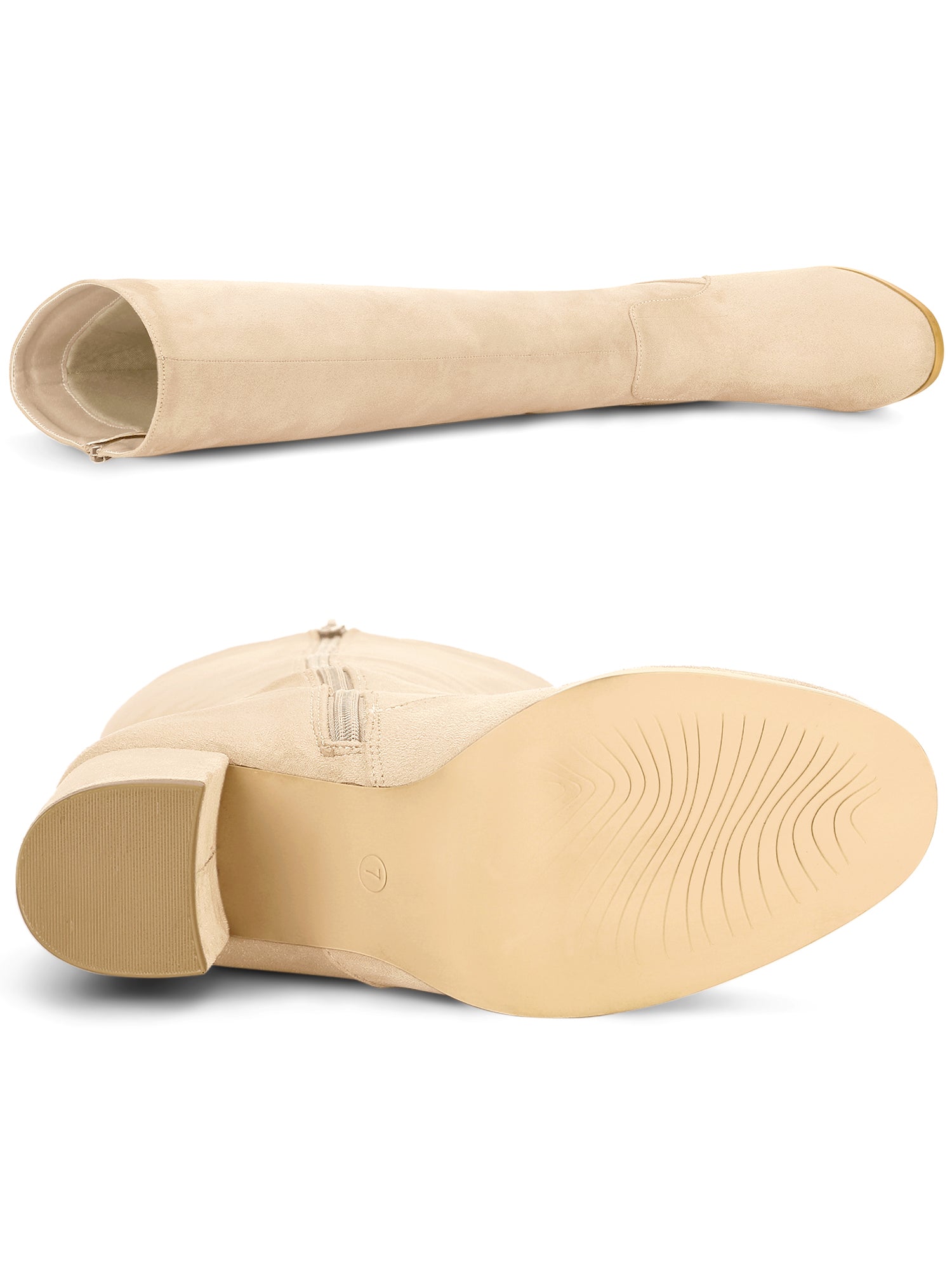 Women's Side Zipper Knee High Boots Chunky Heel Knee Boots, Light Colors