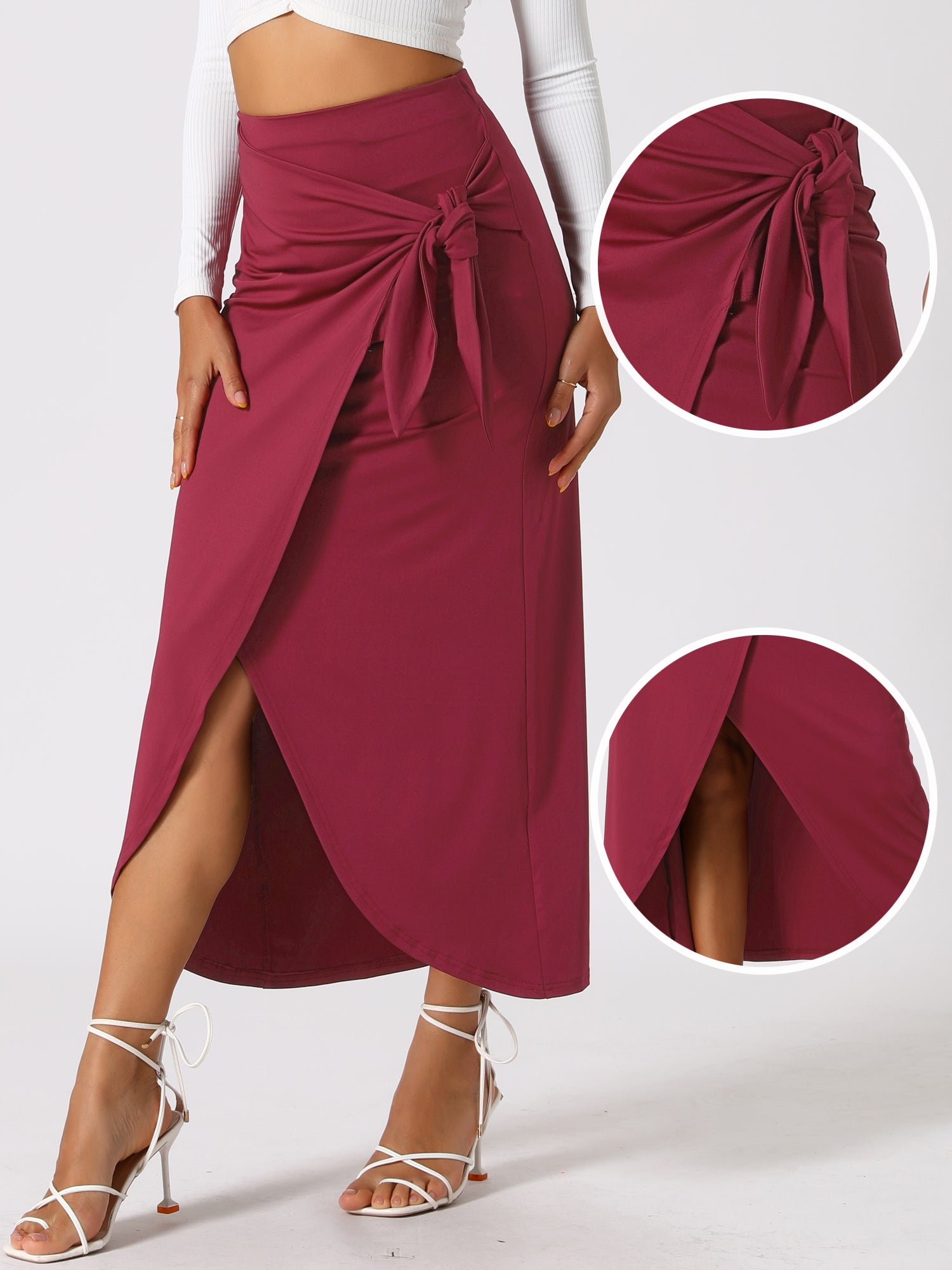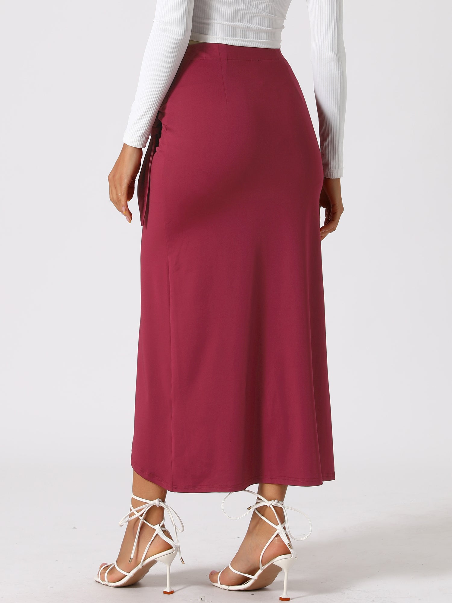 Women's Split Thigh Front High Waist Long Skirt Boho Wrap Draped Bodycon Skirt