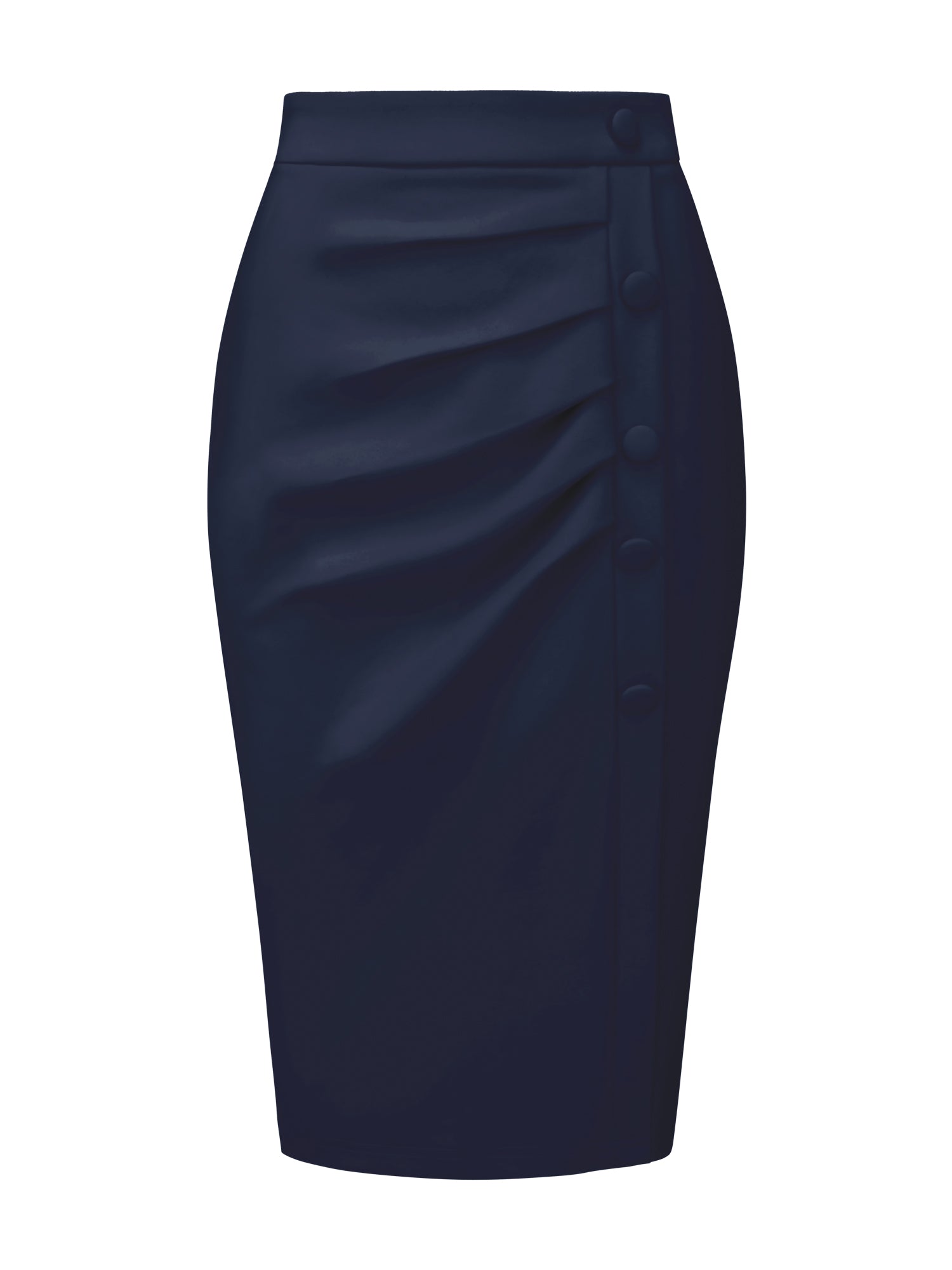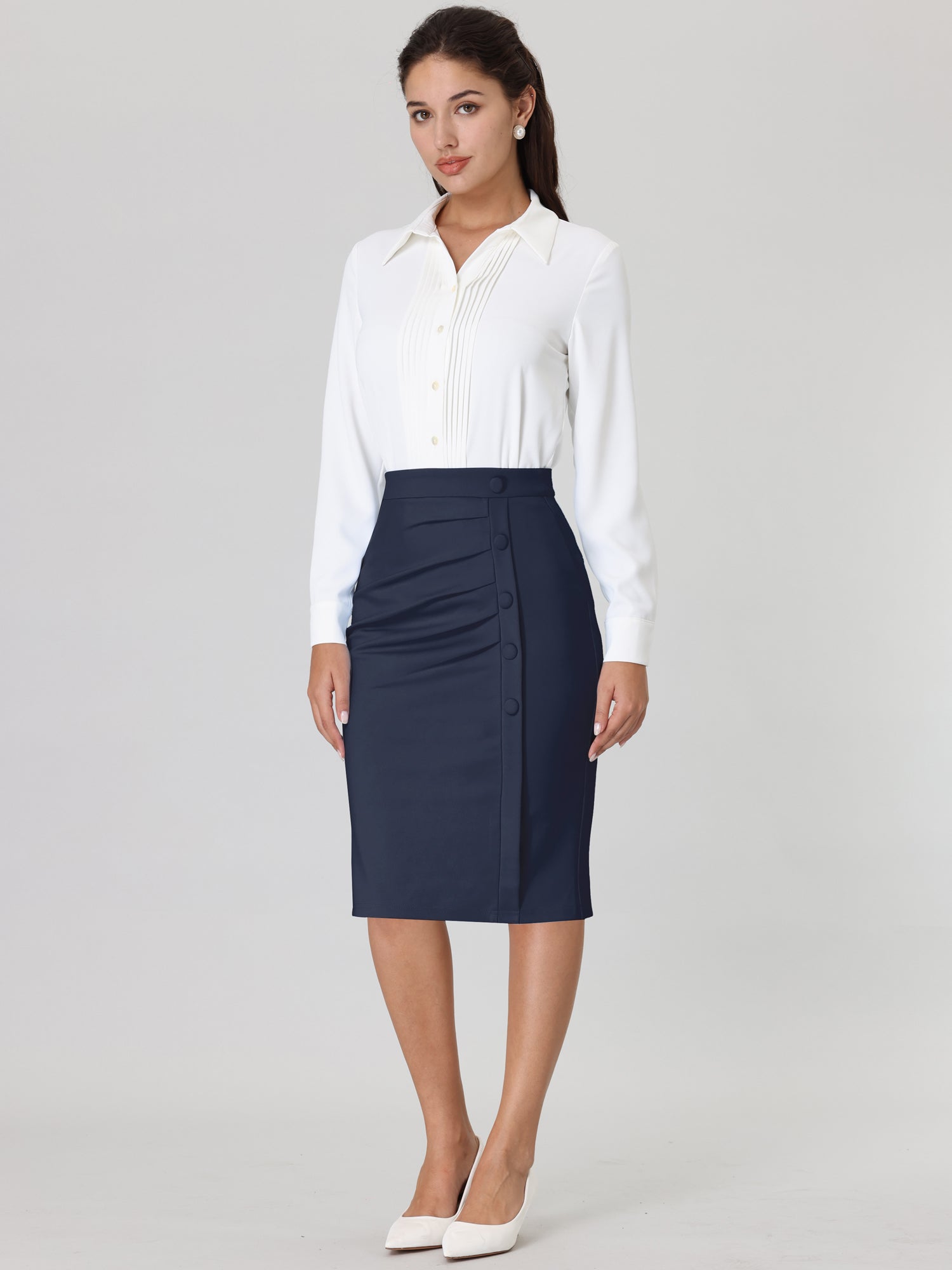 Women's Wear to Work Pencil Skirt Elastic High Waist Ruched Bodycon Midi Skirts
