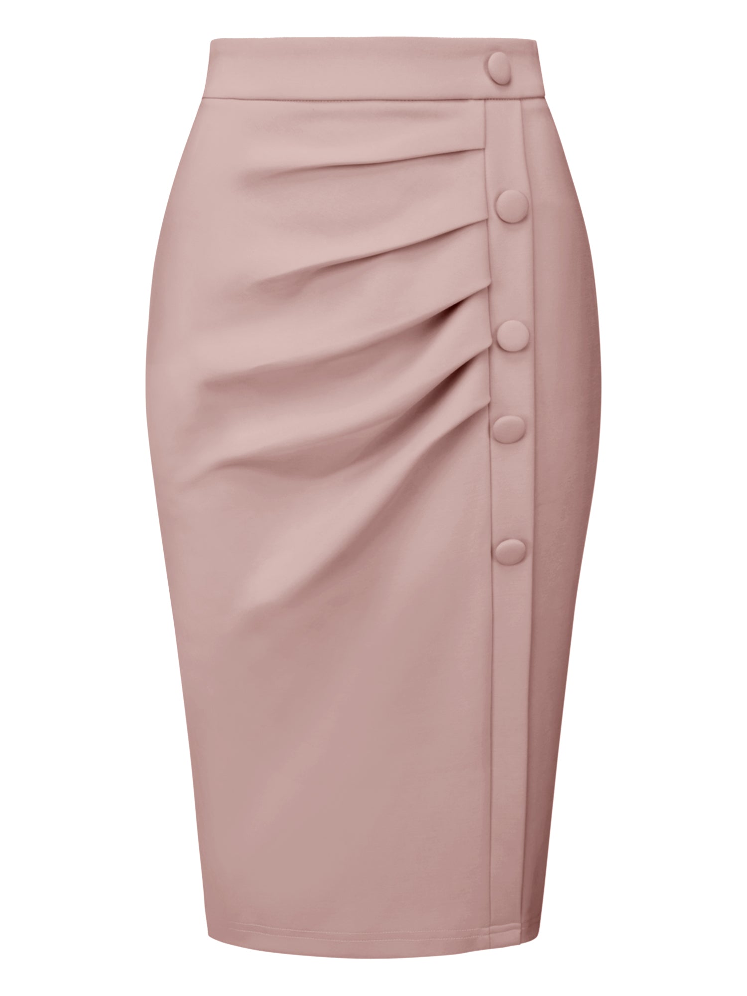 Women's Wear to Work Pencil Skirt Elastic High Waist Ruched Bodycon Midi Skirts